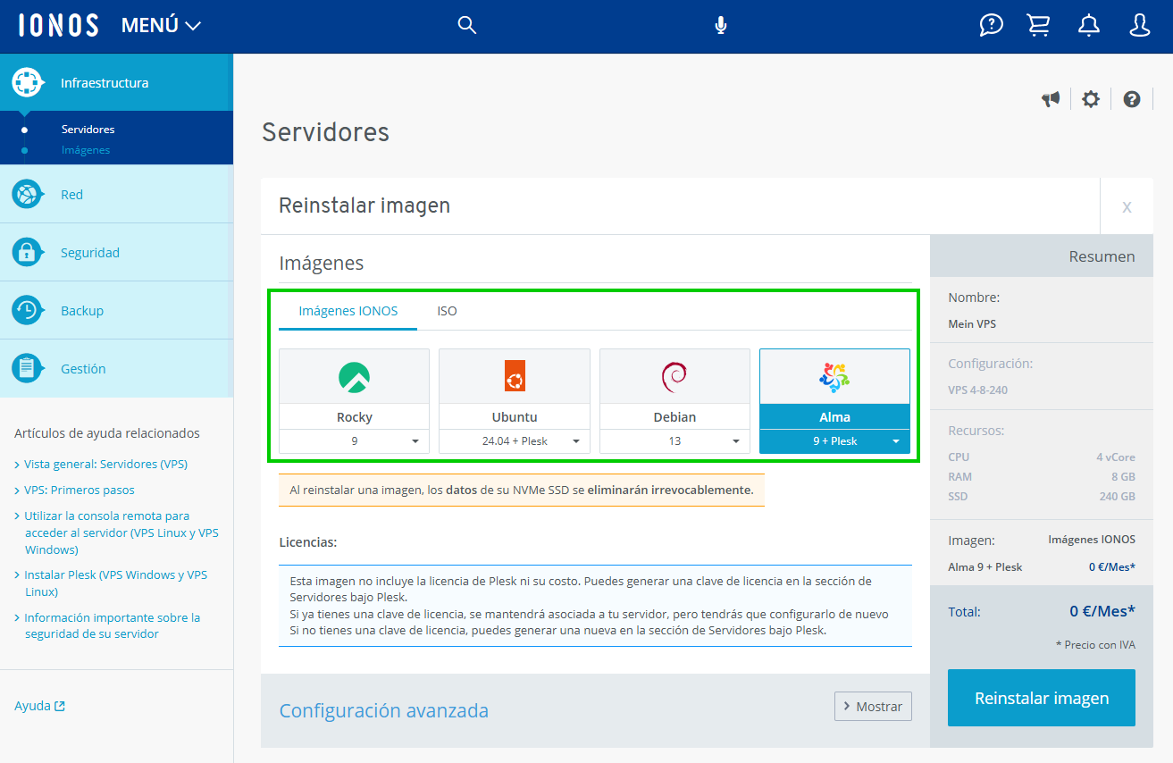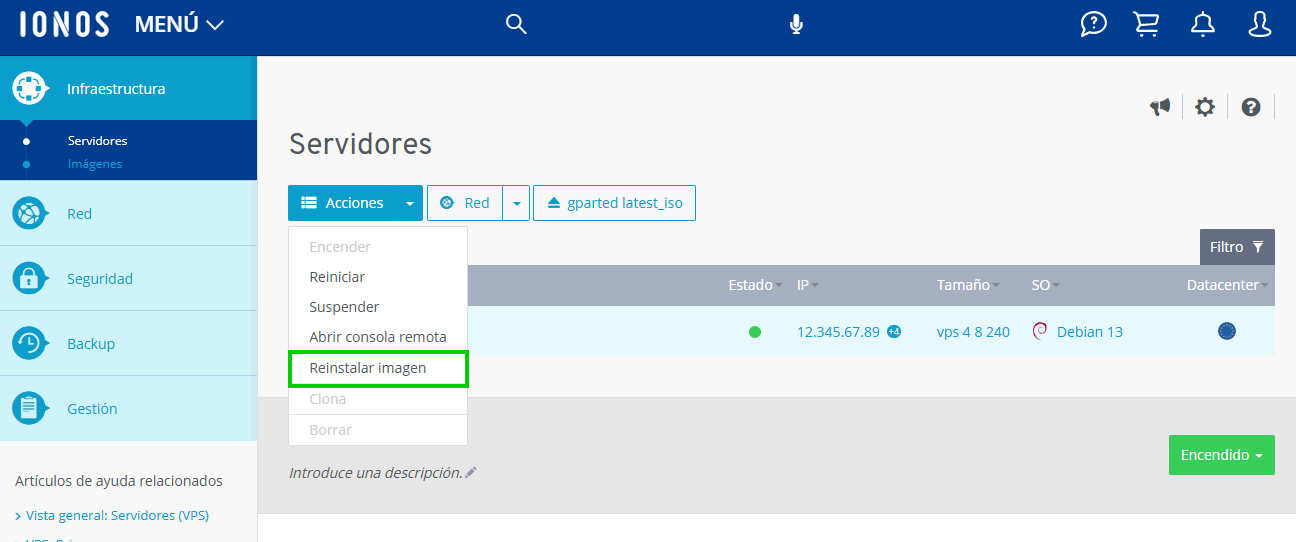 Reinstalar imagen (VPS)