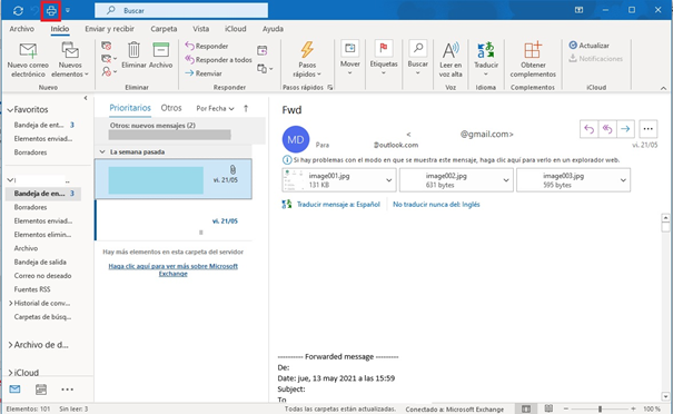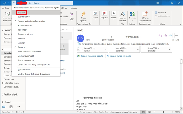 Esta es la forma clásica de imprimir correos en un ordenador que tiene el programa de Outlook instalado. El procedimiento es el siguiente: