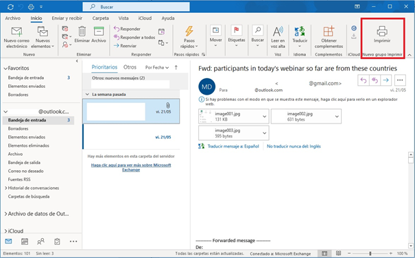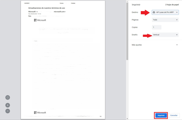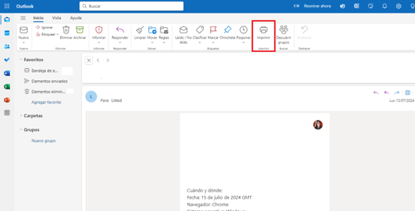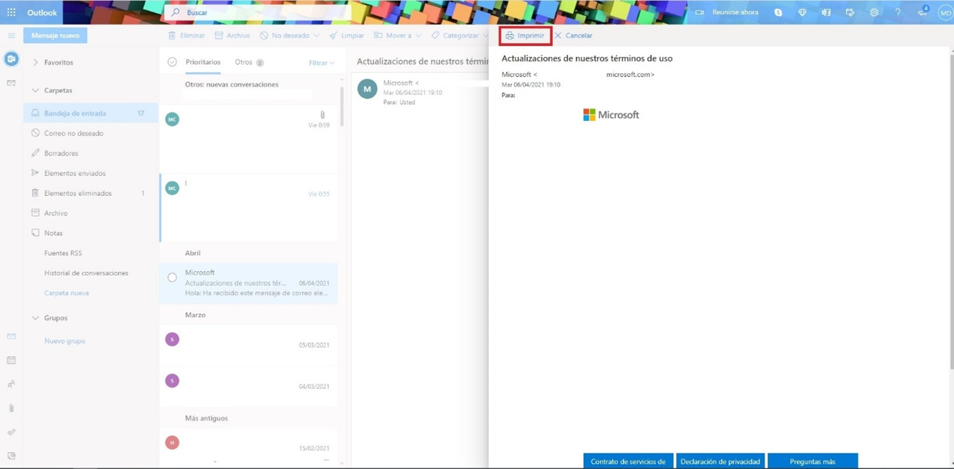 Imprimir correos de Outlook desde la web
