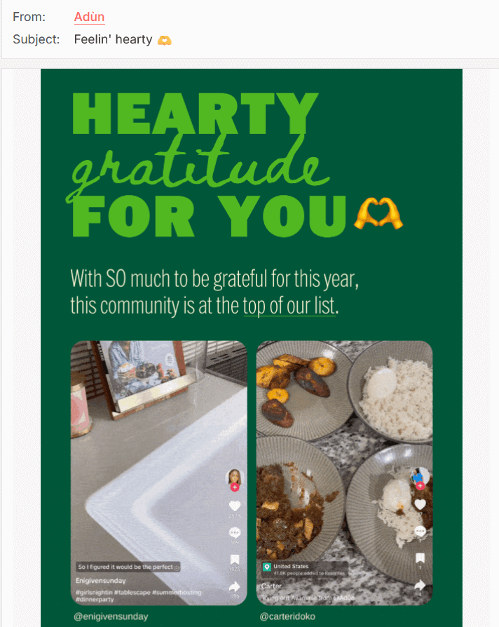 Por mucho que te esfuerces en diseñar tu newsletter para vender a tus lectores productos o servicios y conseguir su fidelización a largo plazo, no podrás igualar el efecto de las reseñas y opiniones de otros usuarios en lo que a fiabilidad y capacidad de persuasión se refiere. Por ello, el User Generated Content (también conocido como contenido generado por el usuario) puede ser un importante aliado del marketing. Su uso conforma una de las tendencias de email marketing de 2025.