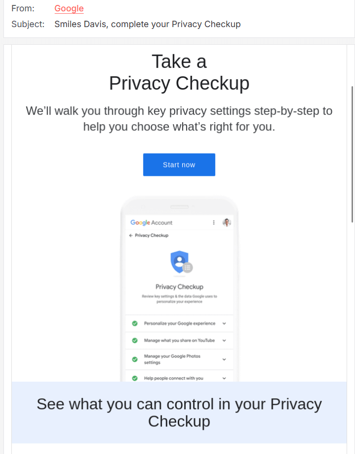 Otra tendencia en el marketing por correo electrónico que compite con las posibilidades de la inteligencia artificial —y que no debe pasarse por alto— es la protección de datos. Por supuesto, no se trata de un tema nuevo. La protección de datos es, ha sido y seguirá siendo una tarea fundamental para los especialistas en marketing. La gran cantidad de información personal disponible facilita la publicidad en internet (especialmente cuando se combina con IA). Sin embargo, es imprescindible cumplir con las leyes aplicables. Si no lo haces, tus clientes (actuales y futuros) perderán la confianza en ti.