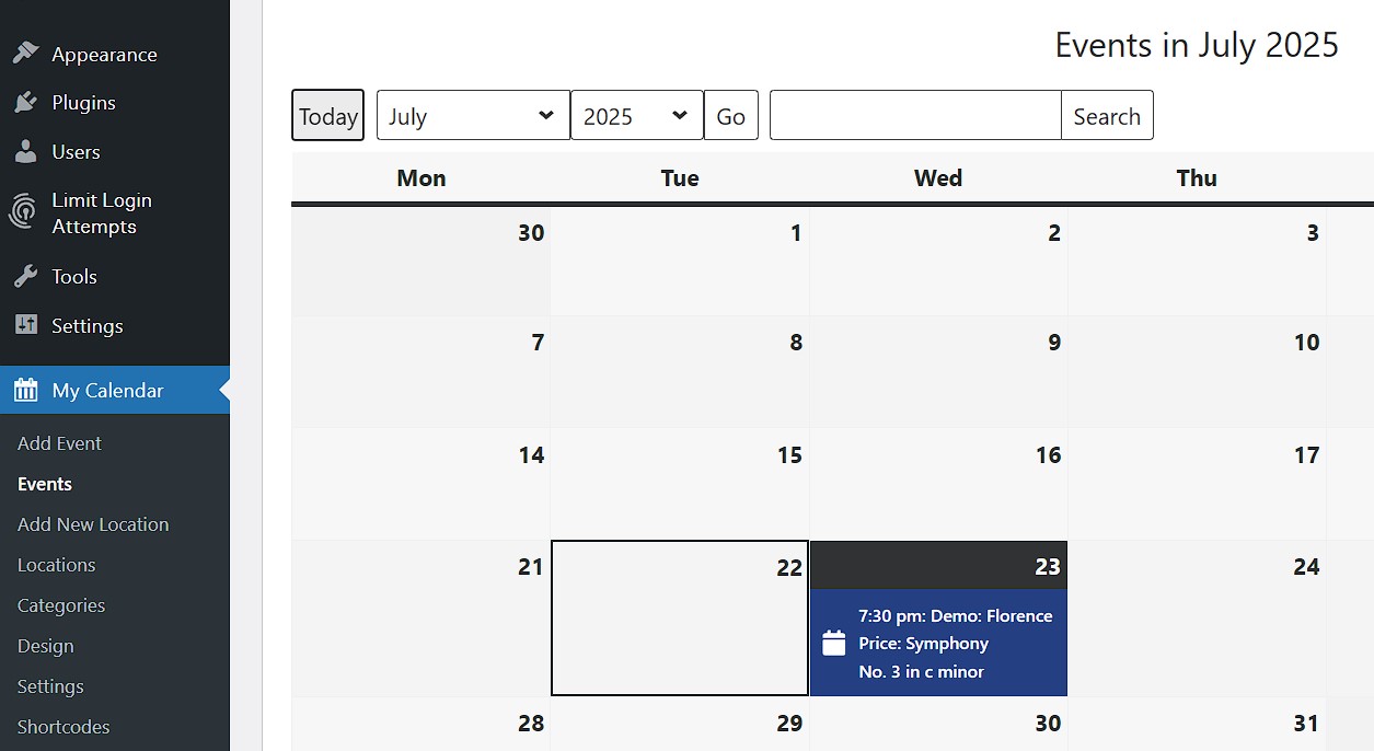 La extensión My Calendar es un plugin de WordPress accesible para crear calendarios de eventos. Permite mostrar los eventos de varios calendarios en páginas, publicaciones o widgets, con filtros por categorías, autores o ubicaciones, así como mostrar próximos eventos. También permite integrar datos desde bases de datos remotas, algo poco habitual. La versión profesional permite la edición de eventos por autores previamente aprobados. Junto con la importación .ics y .csv, la edición de pago ofrece soporte para múltiples idiomas, así como una API REST para poder mostrar eventos en varias páginas web.