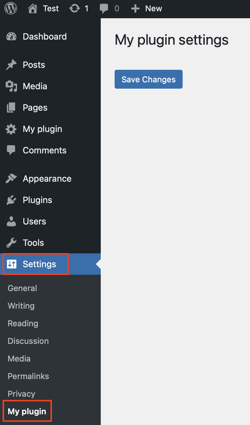 }phpDespués de guardar, aparecerá una nueva entrada para tu plugin en el menú de “Ajustes” en el panel de administración de WordPress.