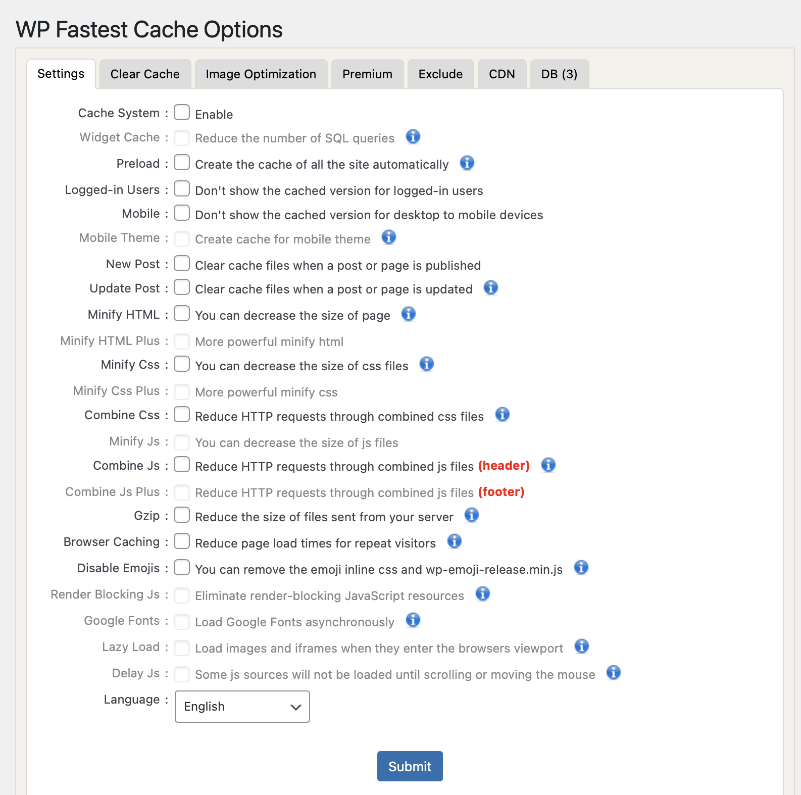 | ✓ Compresión con GZip | ✗ La optimización de la base de datos solo está disponible en la versión de pago |