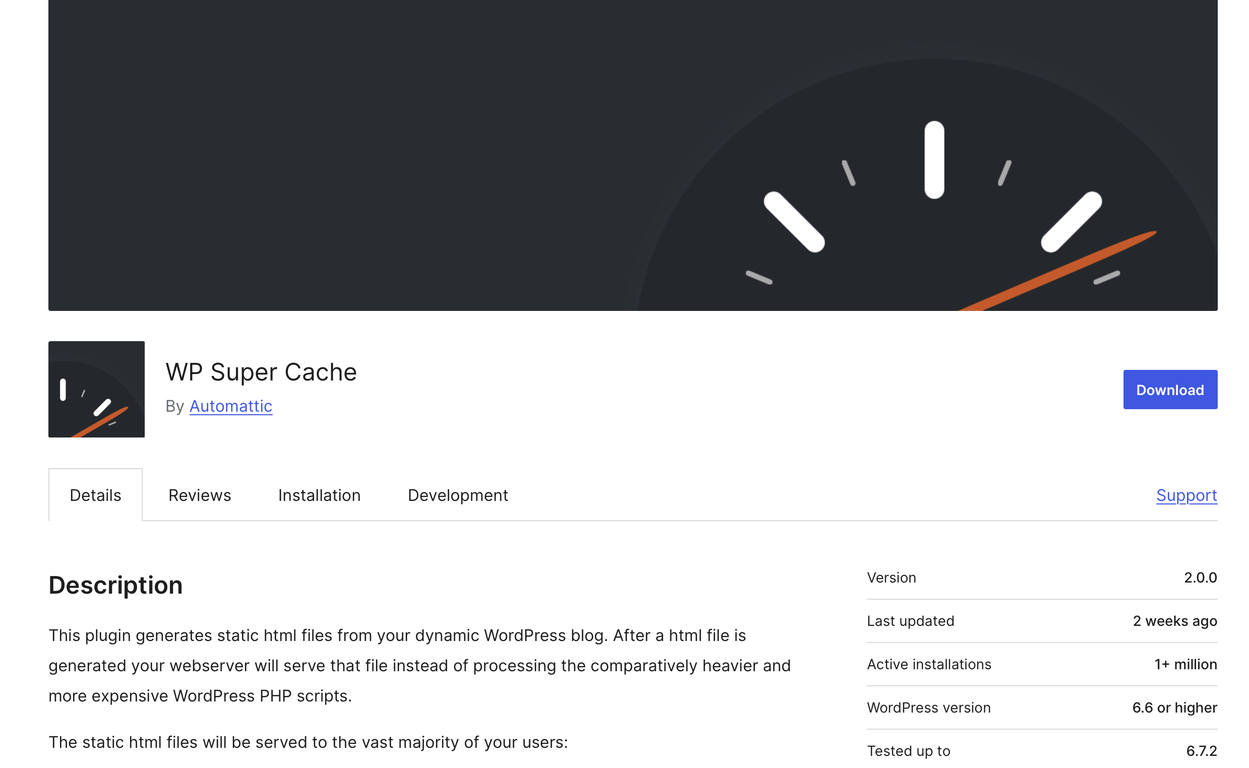 La compañía que ha desarrollado el plugin WP Super Cache es la misma que se encarga de gestionar WordPress, de ahí que, entre los usuarios, se considere como el plugin de caching oficial del sistema. Su mayor ventaja es que genera páginas HTML estáticas. Este método, comparado con la obtención de información a partir de la base de datos, hace que el navegador muestre la página de forma mucho más rápida.