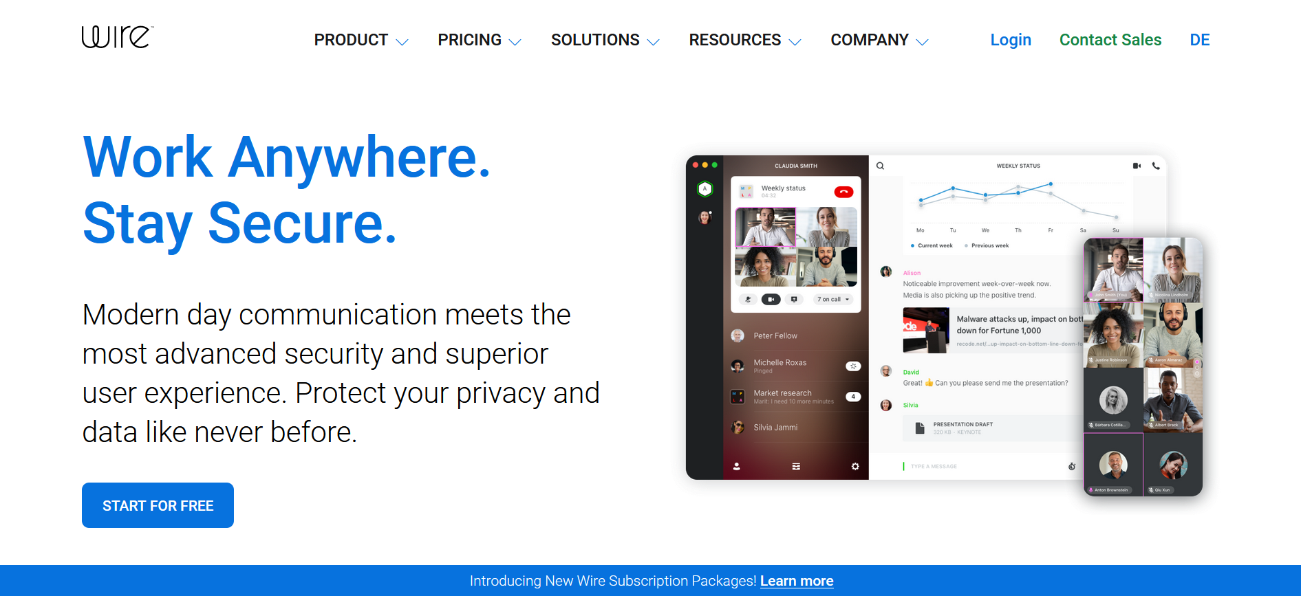 Wire es un mensajero seguro y una alternativa a WhatsApp, fundada en 2012 y lanzada dos años después. La empresa responsable, Wire Swiss GmbH, tiene su sede en Suiza, mientras que gran parte del desarrollo técnico se lleva a cabo en Berlín. Además, cuenta con una oficina en San Francisco. El código fuente de Wire es de acceso público y su diseño de experiencia de usuario (UX) es atractivo.