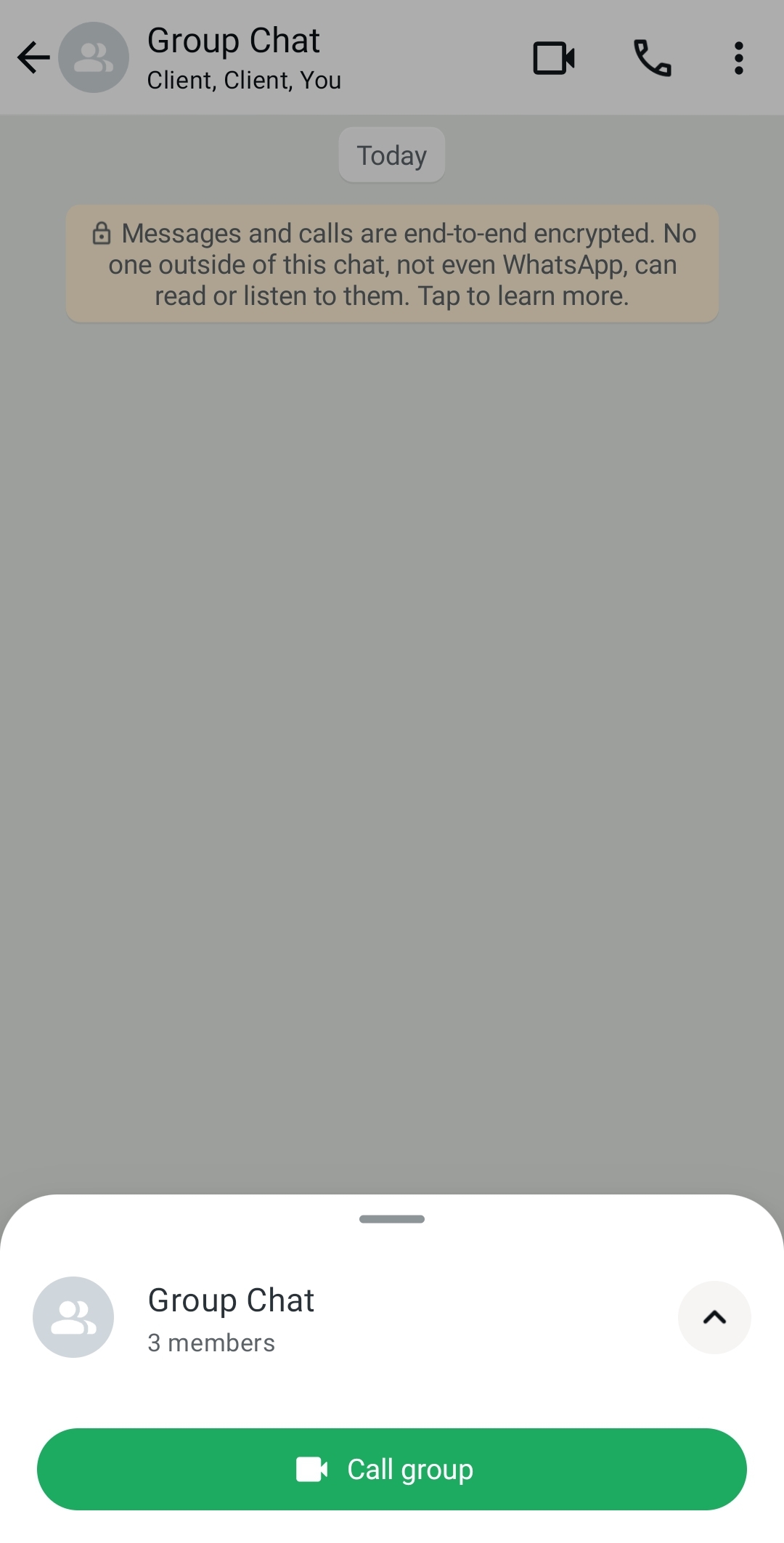 Tu llamada grupal de WhatsApp (de voz o vídeo) está protegida con cifrado de extremo a extremo. Durante la llamada, puedes enviar mensajes o compartir tu pantalla.