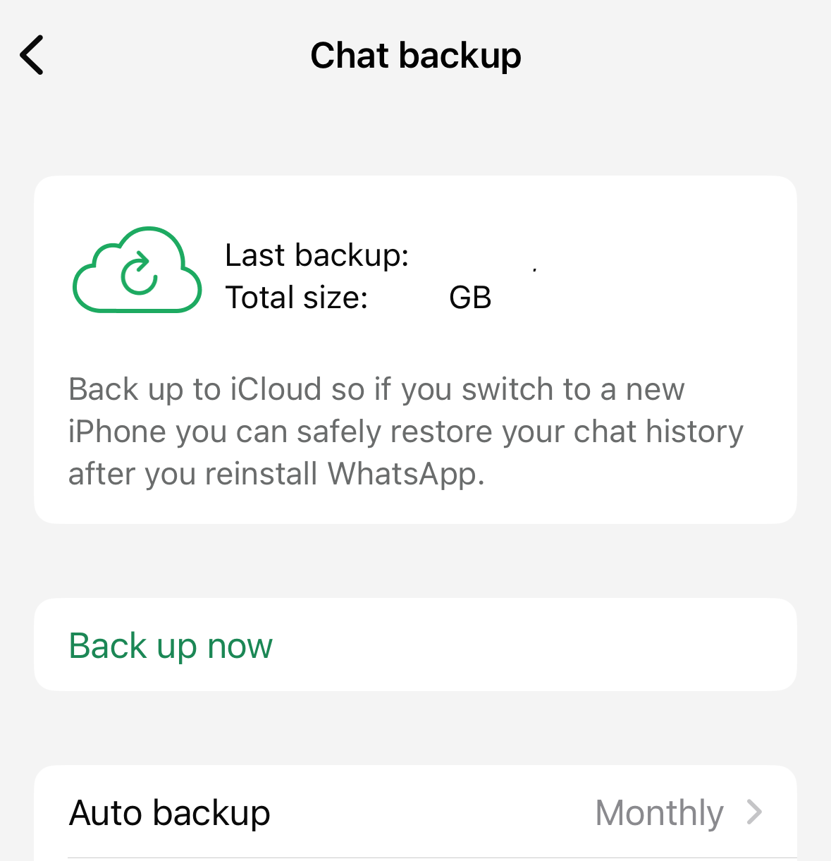 Si tienes acceso a iCloud, podrás ver la fecha y la hora de tu última copia de seguridad. Si no has iniciado sesión en iCloud, selecciona el cuadro de notificación amarillo y sigue las instrucciones que aparezcan en pantalla para activar una copia de seguridad de iCloud.