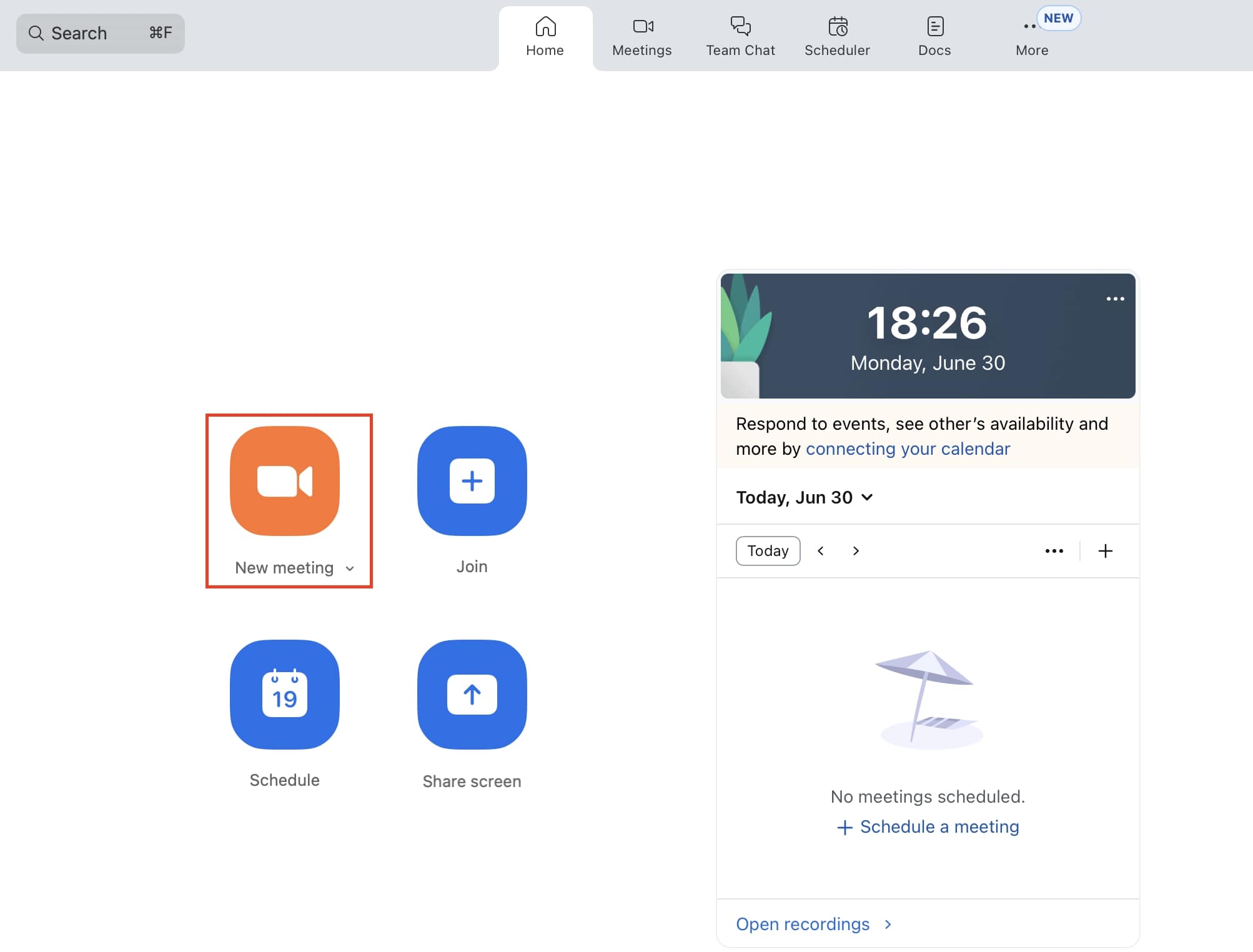 Paso 1: inicia sesión en la aplicación de escritorio de Zoom y crea una reunión.
