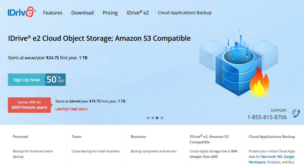 A pesar de lo que su nombre pueda sugerir, IDrive no tiene nada que ver con los productos de Apple. Si finalmente decides optar por algún plan de los que ofrece la empresa estadounidense para realizar las copias de seguridad en la nube, debes tener en cuenta que un solo paquete cubre todos los dispositivos. Aun así, has de seleccionar por adelantado la capacidad de almacenamiento necesaria. Las opciones de almacenamiento van de 5 TB a 500 TB para particulares, equipos y empresas.