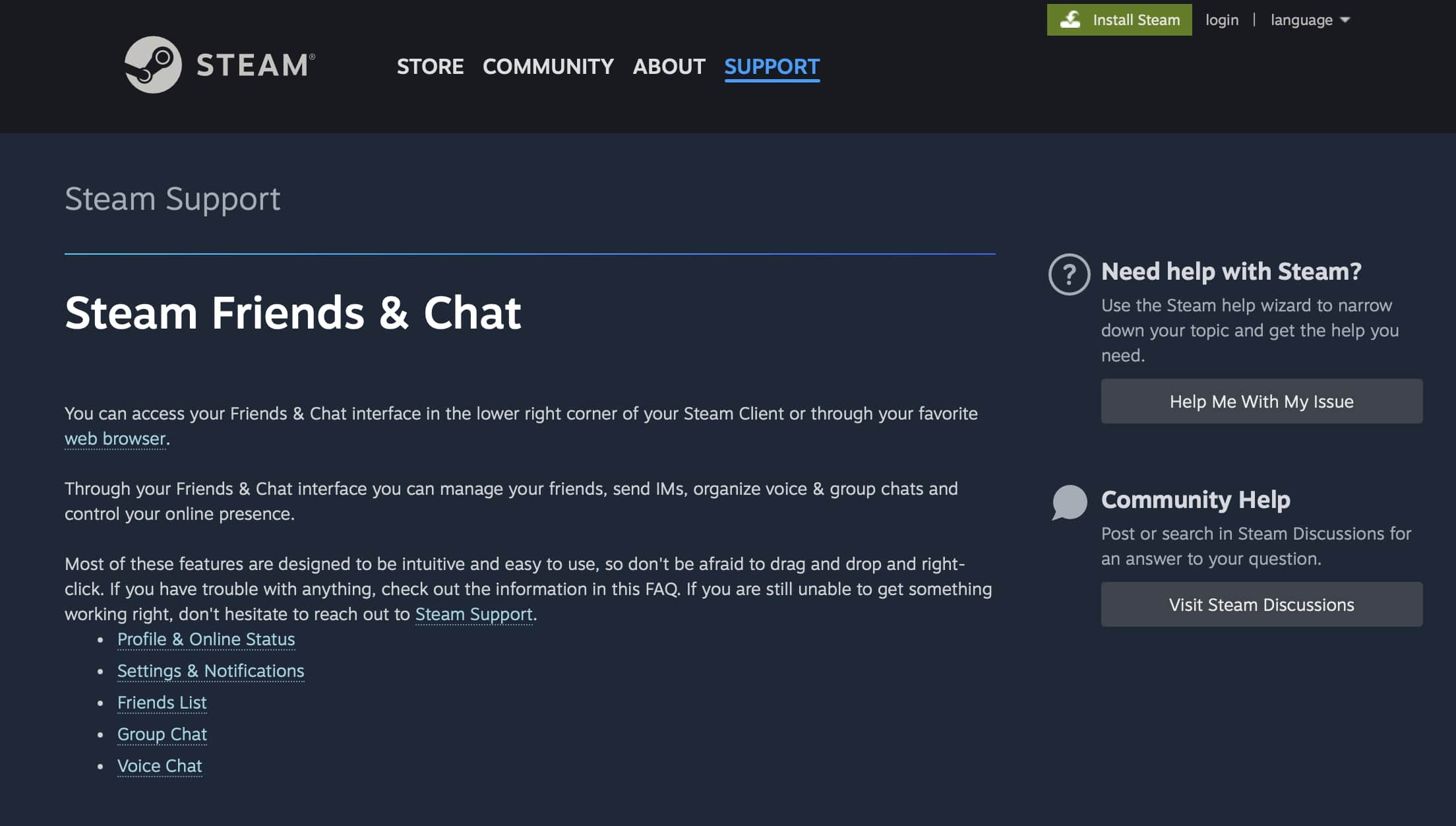 El portal de videojuegos online de Steam ofrece a los usuarios conectados un chat de voz y vídeo integrado y una aplicación de mensajería móvil. / Fuente: https://help.steampowered.com/en/faqs/view/595C-42F4-3B66-E02F