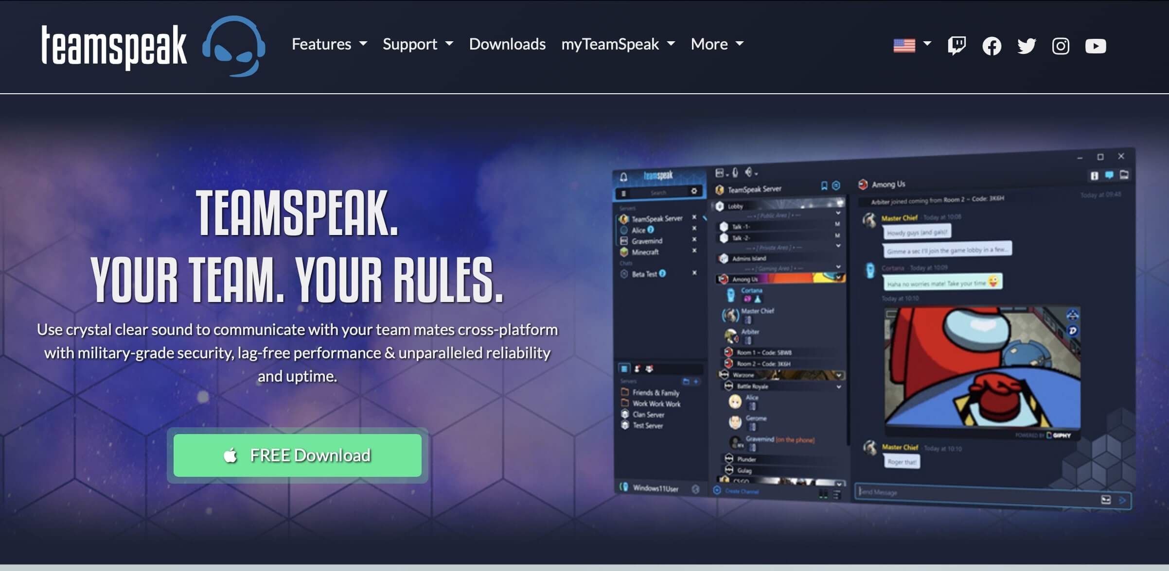 TeamSpeak es uno de los líderes del mercado de las aplicaciones de chat de voz y es especialmente popular entre los gamers. / Fuente: https://www.teamspeak.com/