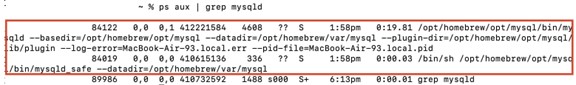 ps -aux | grep mysqlEste comando devuelve una lista de los procesos en ejecución que contienen “mysql” en su nombre. En la lista también aparece el propio comando que acabas de ejecutar. Si MySQL está activo, verás además el proceso correspondiente a MySQL.