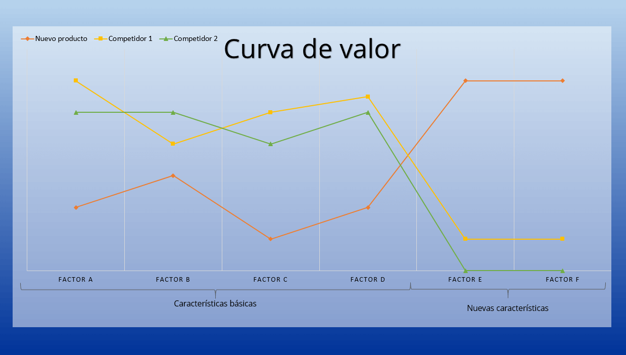 Para que una estrategia de océano azul pueda ser coronada con éxito es aconsejable analizar las expectativas y deseos del público objetivo. ¿Qué esperan los consumidores de un nuevo producto? Los resultados se pueden plasmar en una curva de valor: en uno de sus ejes se ordenan diferentes factores de un producto y, en el otro, se simboliza la importancia o valor. A partir de los resultados obtenidos se puede determinar qué prefiere el consumidor final. También es necesario analizar las ofertas de la competencia dentro de la industria. De esta forma se pueden deducir aquellos cambios que debería incluir el nuevo producto para que resulte innovador, siguiendo así la dirección de una blue ocean strategy.