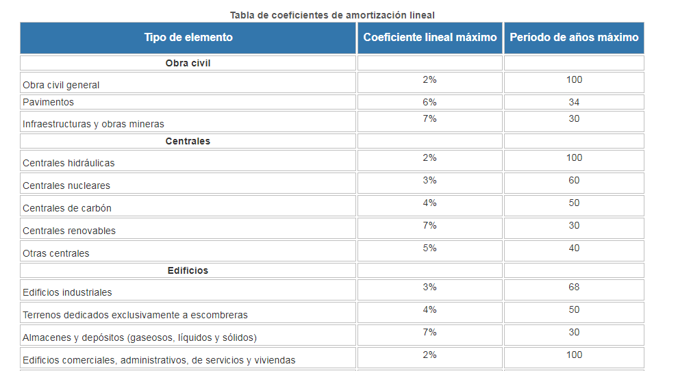 Con esta información, calculamos así el porcentaje de amortización anual: