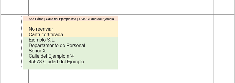Como alternativa al bloque de información, también puedes colocar estos datos en una línea de referencias debajo del campo de dirección, dejando un espacio de dos líneas en blanco.