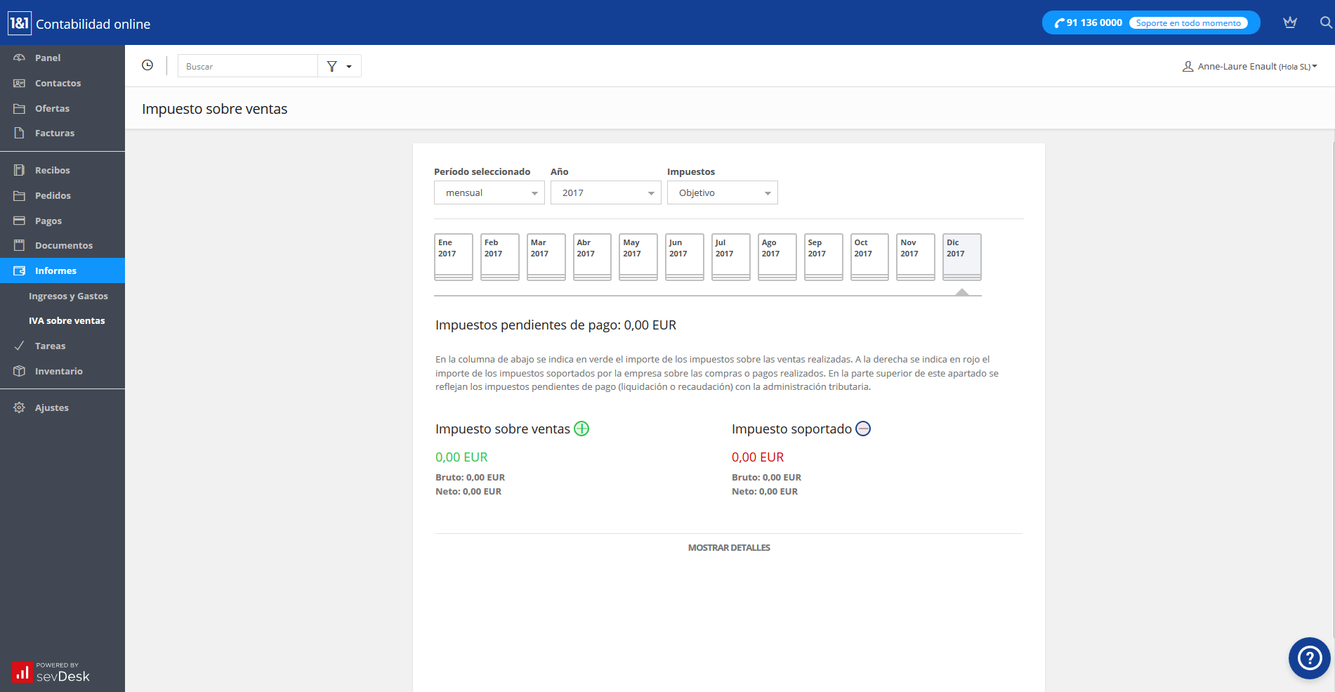 Con este balance el empresario está siempre al tanto de la rentabilidad de su negocio en un cierto periodo de tiempo. El programa tiene en cuenta todas las entradas y salidas reales y registradas en el sistema y las exporta a PDF