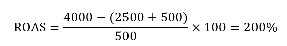En nuestro ejemplo tenemos como resultado un ROAS de 200 %.