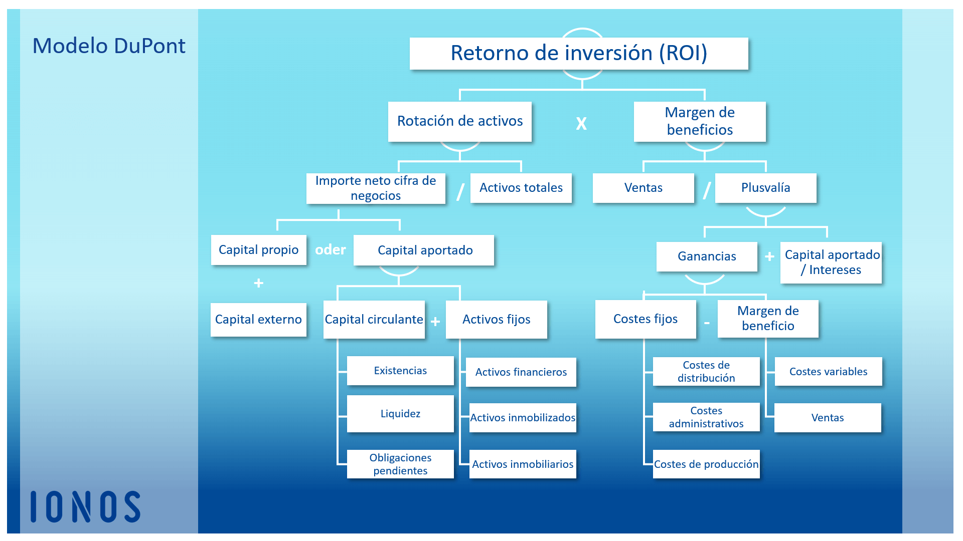 Como índice estrella del sistema DuPont, el retorno de inversión (ROI) abarca por una parte la rentabilidad del capital propio (Return on Equity – ROE), y por otra la rentabilidad del capital invertido en activos fijos (Return on Assets – ROA), que se componen de capital propio y ajeno.