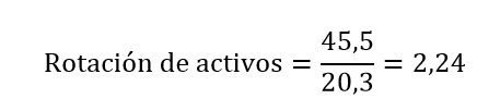 En la empresa de nuestro ejemplo tenemos como resultado una rotación de activo de 2,24.