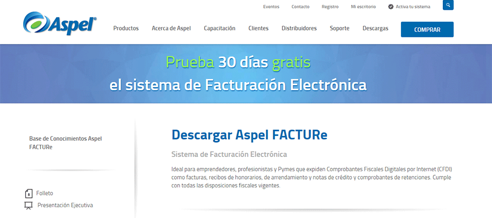 | Aspel Facture | Personas fÃsicas o morales, independientemente de su profesión o giro comercial | Se puede rediseñar el sistema para personalizarlo de acuerdo a las necesidades | Requiere la instalación de un software | Paquete Nuevo= 1575 MXN Paquete en actualización= 945 MXN Suscripción mensual= 88 MXN (los precios no incluyen IVA) | â 30 dÃas |
