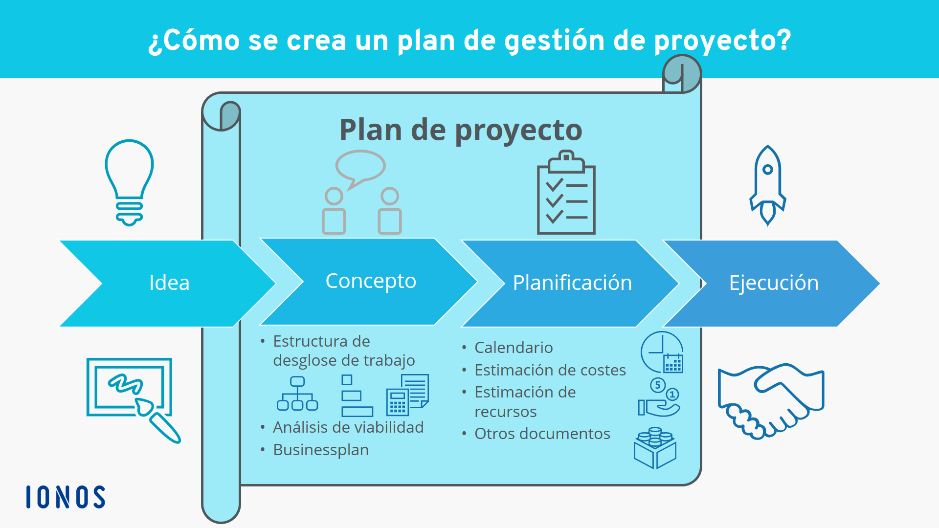 - Plan de gestión del proyecto: incluye el plan de estructura del proyecto, la planificación del proyecto y toda la documentación necesaria. Cuando en este artículo se habla de “plan de proyecto” nos referimos a este apartado.